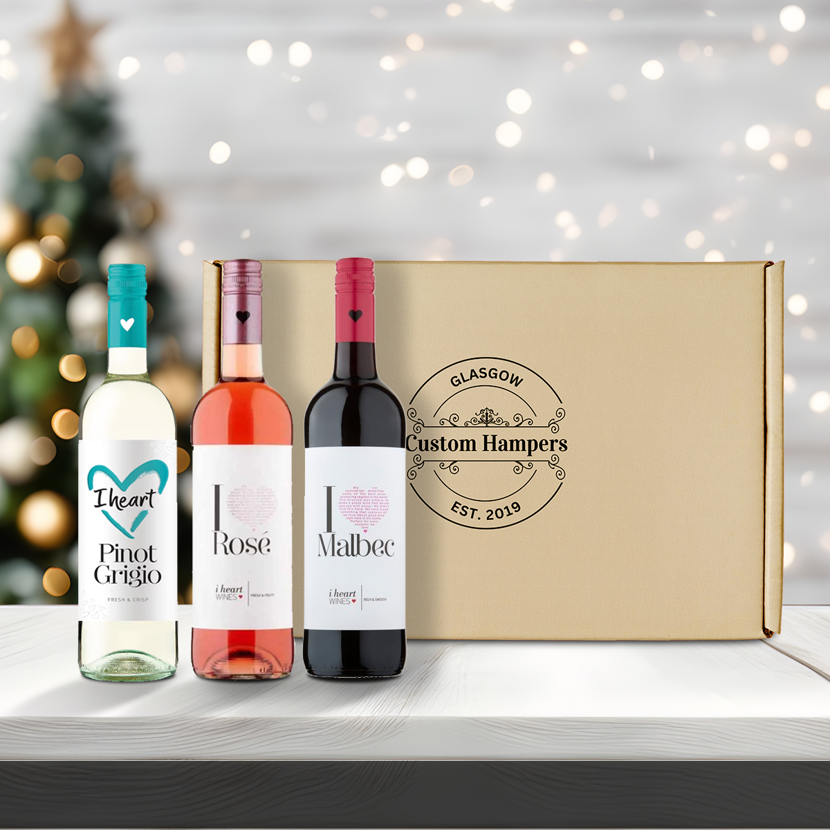 The hamper contains 3 bottles of I Heart Wines (Note: bottles may vary).